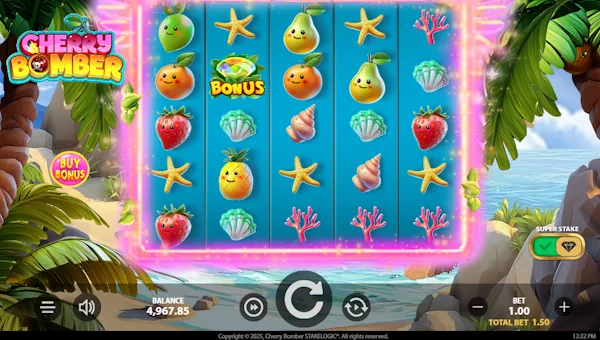 Cherry Bomber is the place where a colorful tropical paradise awaits, brimming with fruity treasures and chances to win big! One of the coolest parts is the Free Spins Bonus, letting you grab up to 20 Free Spins by collecting Bonus symbols, which can unlock even more spins and enhance your winning potential. The Super Free Spins feature adds an extra layer of fun, offering the chance for Multipliers to boost your rewards! And don’t forget the Slingshot Feature, which sends Multiplier Wilds flying onto the reels for some explosive wins.