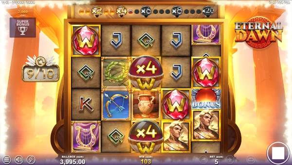 Step into the realm of Apollo in Eternal Dawn, a visually stunning 5×4 slot from Slotmill inspired by ancient Greek mythology. With 30 paylines and a maximum win of 6,000x, this game offers thrilling opportunities for celestial riches. Land three or more Bonus Symbols to trigger Free Spins, where shifting Wilds boost your multiplier with every spin. Enter Super Free Spins, doubling multipliers up to 20x per Wild for even greater rewards. Packed with striking visuals and dynamic mechanics, this slot promises a legendary gaming experience. Ready to embrace Apollo’s favor?