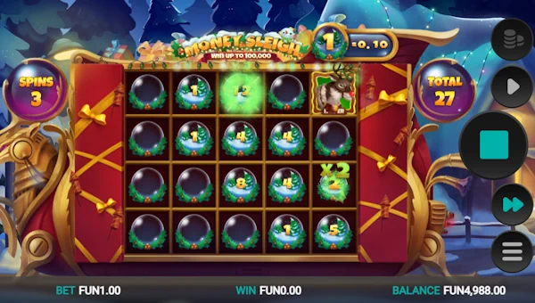 The layout of this game consists of 7 reels with 1111 possible paylines. In most jurisdictions you can also select the Autoplay option when playing Money Sleigh. You can choose from 10, 25, 50, 100 or even more spins. You can opt to stop Autoplay on a win, if a single win exceeds a certain amount, or if your balance increases or decreases by a chosen amount. This is a great way to stay in control and to play more responsibly.