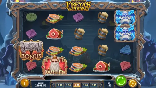 The layout of this game is pretty standard and consists of 5 reels with 30 possible paylines. In most jurisdictions you can also select the Autoplay option when playing Tales of Asgard Freyas Wedding. You can choose from 10, 25, 50, 100 or even more spins. You can opt to stop Autoplay on a win, if a single win exceeds a certain amount, or if your balance increases or decreases by a chosen amount. This is a great way to stay in control and to play more responsibly.